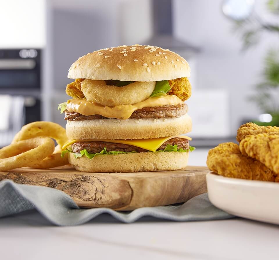 Do you even love burgers if you’ve never added some onion rings and chicken tenders? We don’t think so. With all the usual ingredients of a Big Stack you can put your own stamp on a timeless classic by adding your sides, inside to make the perfect Stack & Sides burger!