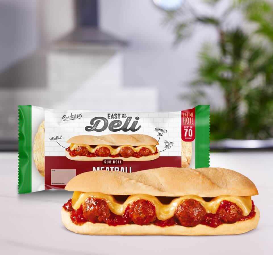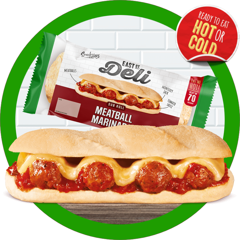 Succulent meatballs, smothered in a rich tomato sauce and buttery Monterey Jack cheese combine perfectly to create a sensational sub. Ready in just 70 seconds you won’t need to wait long to enjoy this delectable delight.